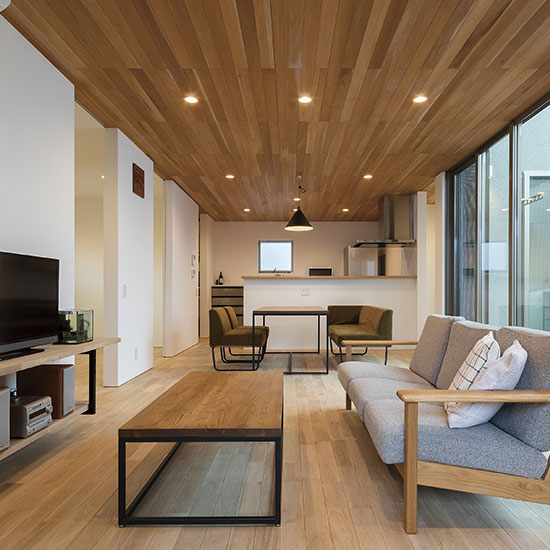 ワンフロアで家族がつながり動線を短くすごせる平屋プラン。将来的にも無駄のない使い方が可能な、永く愛されるスタイルです。